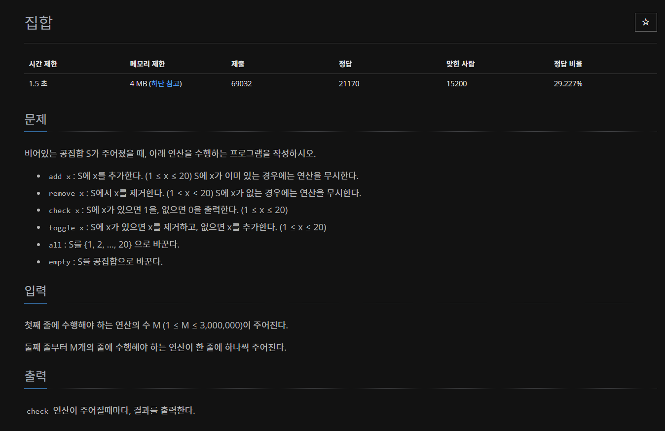 첫째 줄에 수행해야 하는 연산의 수 M (1 ≤ M ≤ 3,000,000)이 주어진다. 둘째 줄부터 M개의 줄에 수행해야 하는 연산이 한 줄에 하나씩 주어진다.