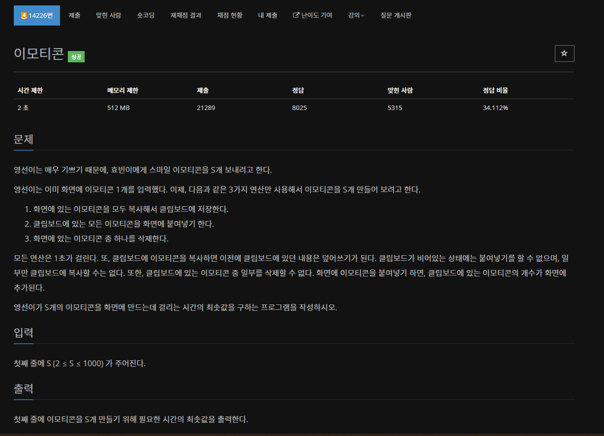 14226번: 이모티콘