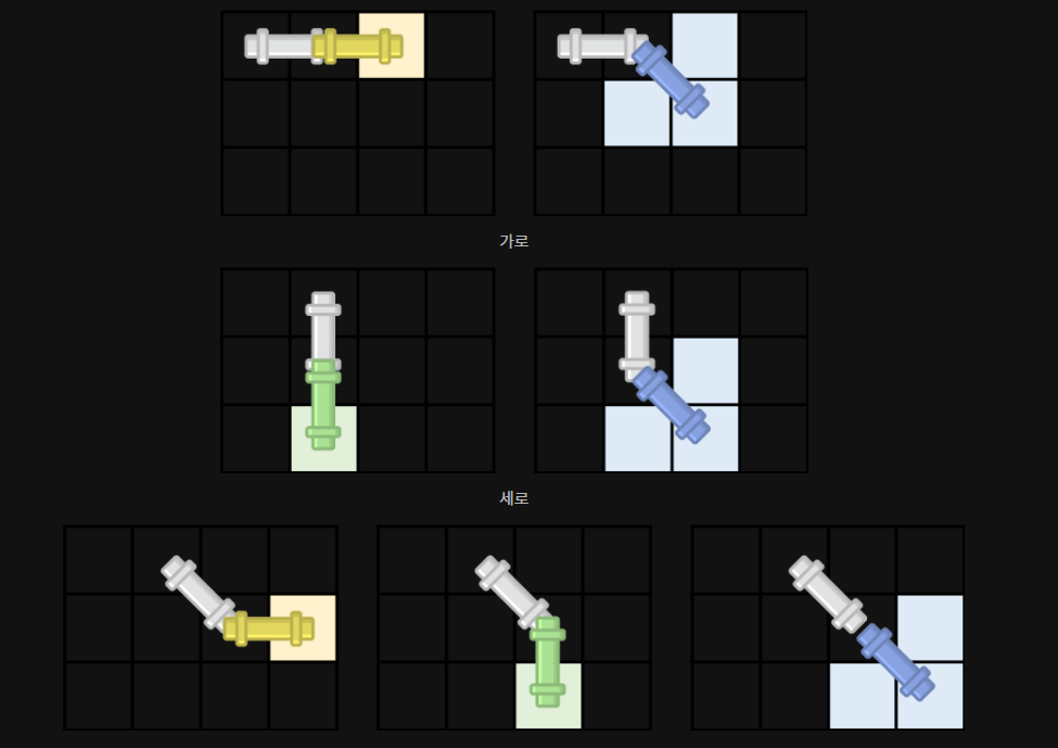 # 3을 하는 이유는 그 좌표에서 가로 파이프인지 세로파이프인지 대각 파이프인지 종류를 분류하기 위하여(0가로, 1세로, 2 대각)