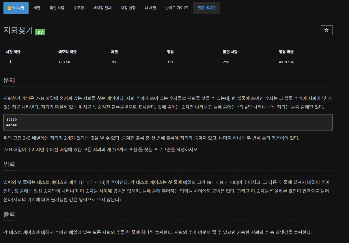 이 생각을 하고나면 지뢰찾기 문제는 편하게 풀 것이다.