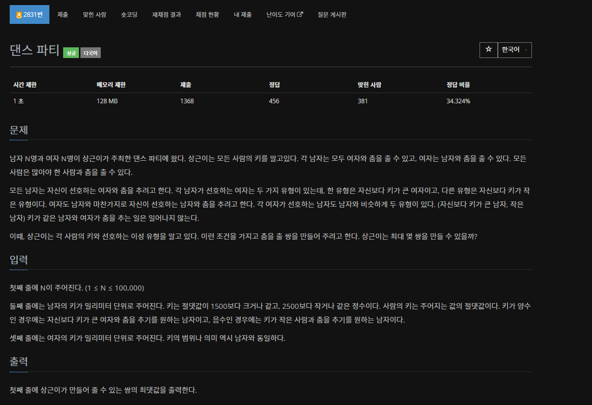 2831번: 댄스 파티
