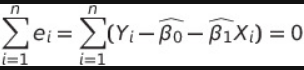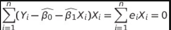 (2) 잔차들의 Xi에 의한 가중합(weighted sum)은 0이다.(위에서 S를 β1으로 미분하면 유도 가능)