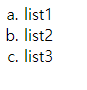 참고로 ol의 기본 type은 숫자 1, 2, 3 이고 type을 바꿔서 a,b,c 등 영어 알파벳(type='a')이나 로마 언어(대문자 type='I', 소문자 type='i')로도 바꿀 수 있다.