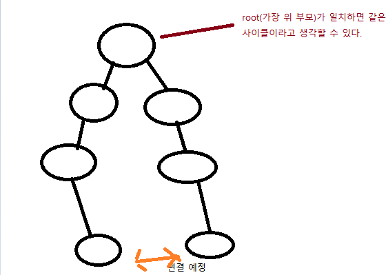 - 하지만 유니온 파인드(union find)를 이용하면 계산양을 줄이고 쉽게 사이클이 만들어지는지 확인할 수 있음을 알 수 있었다.