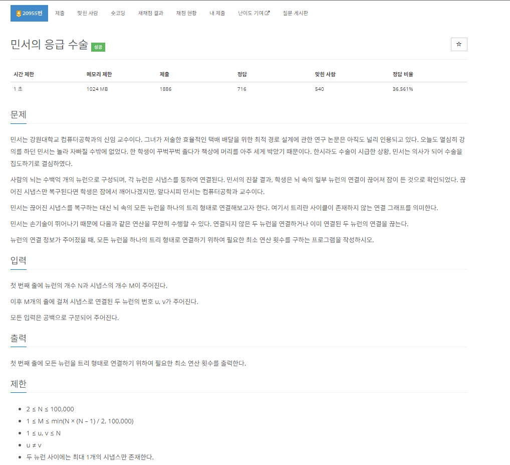 - 만약 시냅스로 연결된 두 뉴런의 번호 u,v를 받았을 때 이미 같은 그룹에 있으면 더 연결 될 필요가 없으므로 잘라내는데에 연산을 한 번 쓰게 된다.