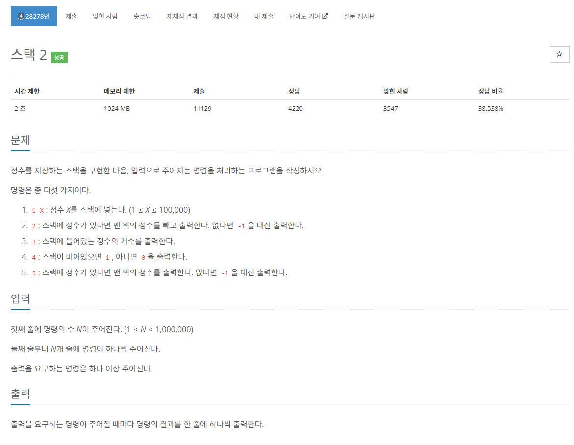 https://www.acmicpc.net/problem/28278