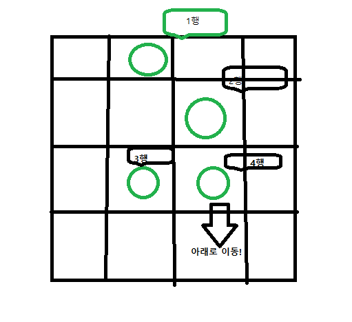 그 다음 down 리스트 안에 가장 아래에 있는 행 탱크부터 아래로 이동시킨다.
