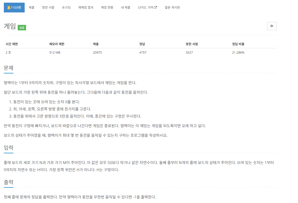 - 다만 떨어질 때 까지 옮겨지는 횟수를 세는 것으로 숫자가 커질 수 있으므로 dp를 사용하여한다.