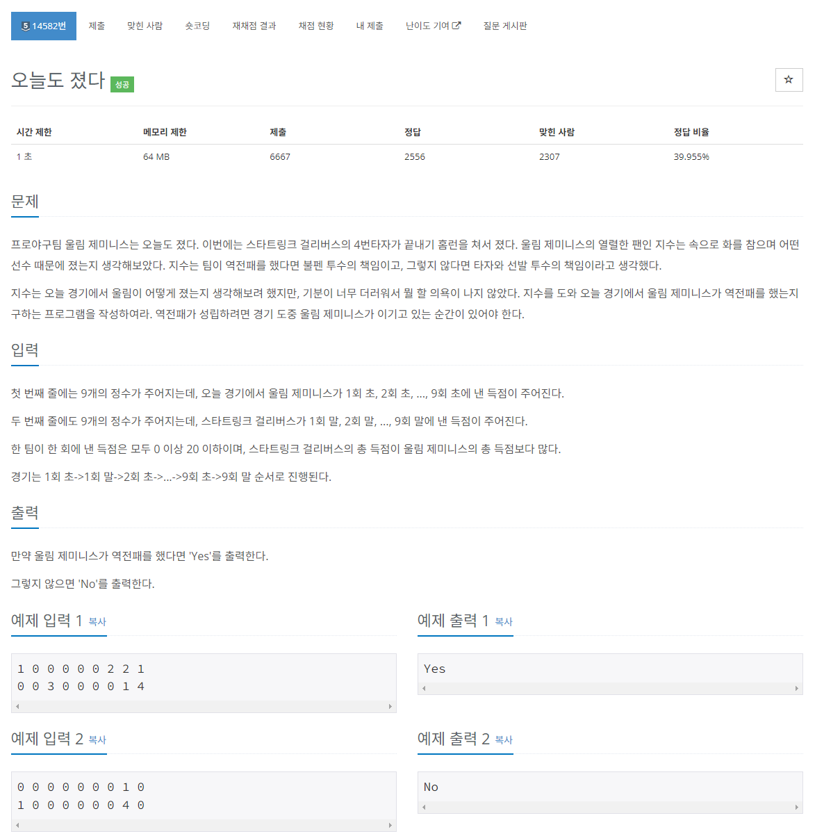 14582번: 오늘도 졌다