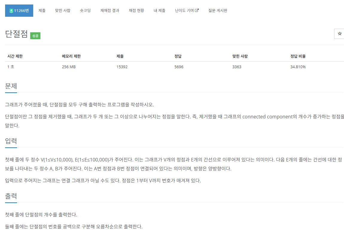 - 단순 사이클을 이루는 점이거나 직선 그래프를 잇는 점이 아닌 여러 노드들을 잇는 교차로 점들을 단절점이라 생각하면 된다.
