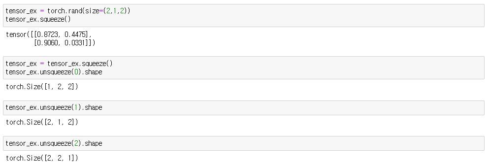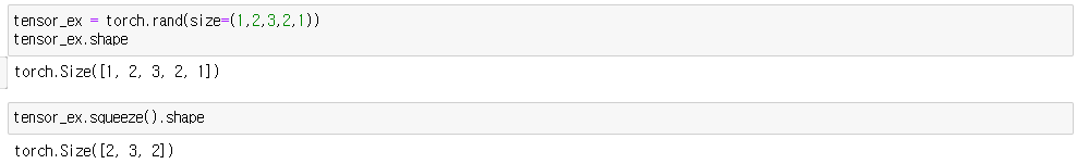 - unsqueeze: 차원의 개수가 1인 차원을 추가