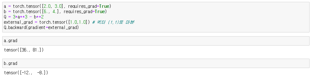 $Q =3a^3 - b^2$ 를 a, b에 대해서 autograd를 확인하려고 한다.