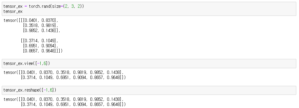 - view: reshaper과 동일하게 tensor의 shape을 변환