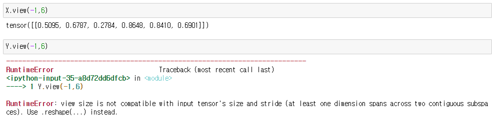 즉 X는 메모리 순서대로 읽기 때문에 view 사용 가능하지만 Y는 메모리 순서대로 읽지 않기 때문에 view 사용을 할 수 없다.