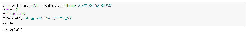 PyTorch의 가장 큰 핵심중 하나인 자동 미분(AutoGrad) 지원한다는 것이다.