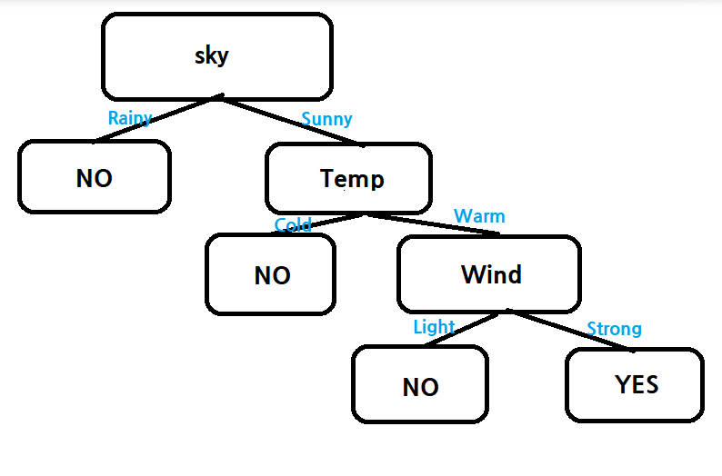 | Rainy | Cold | High | Strong | Warm | Change | No |