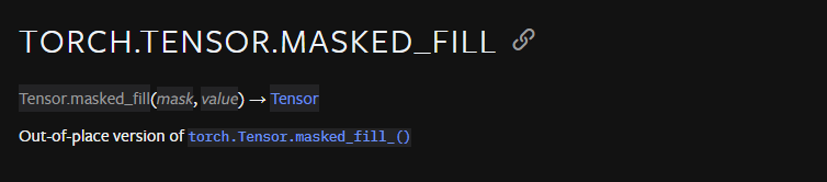 파이토치에서 masked_fill() 함수는 파이토치 tensor 의 특정 값을 다른 값으로 바꾸고자 할 때 사용된다.