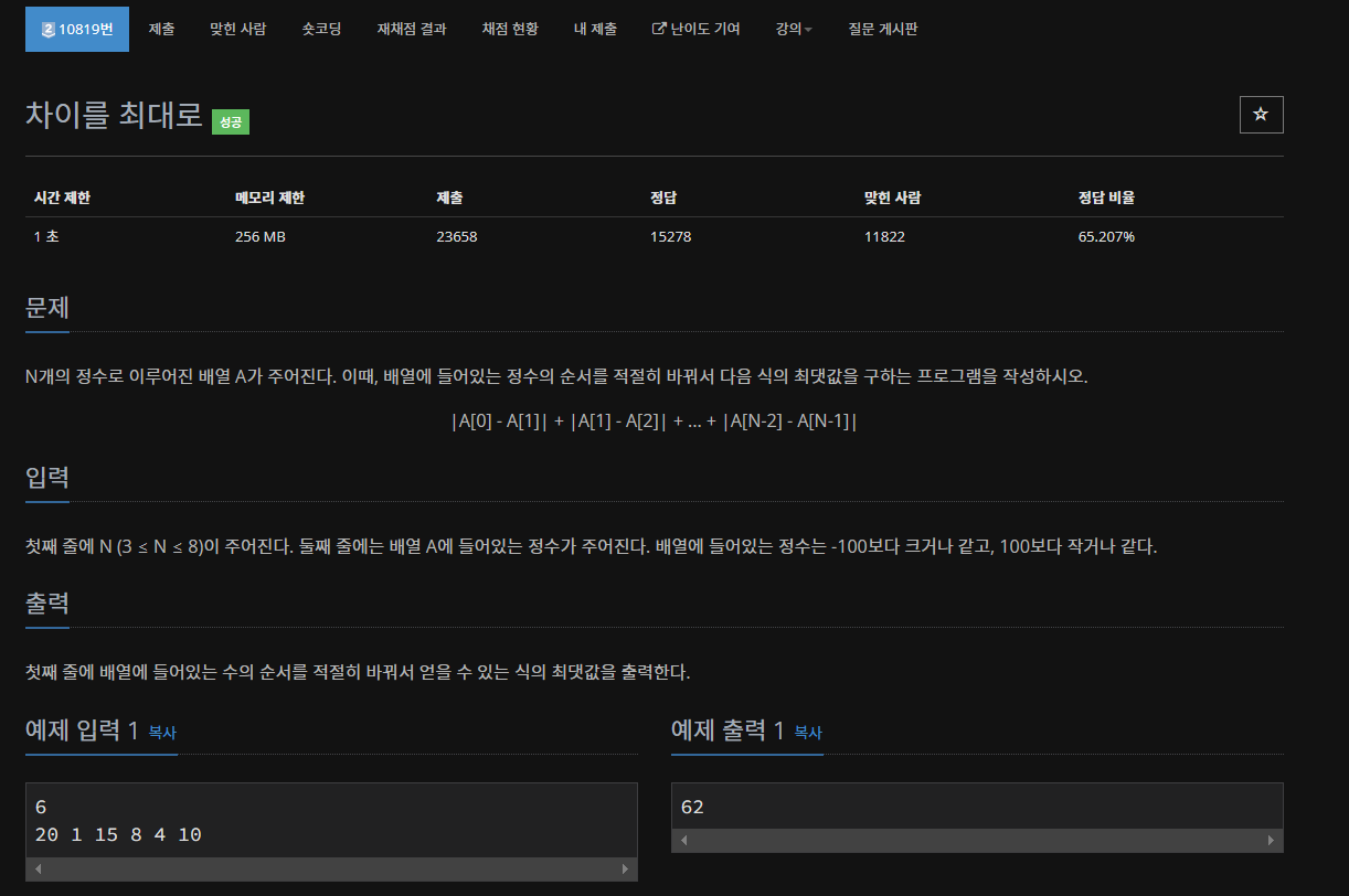https://www.acmicpc.net/problem/10819