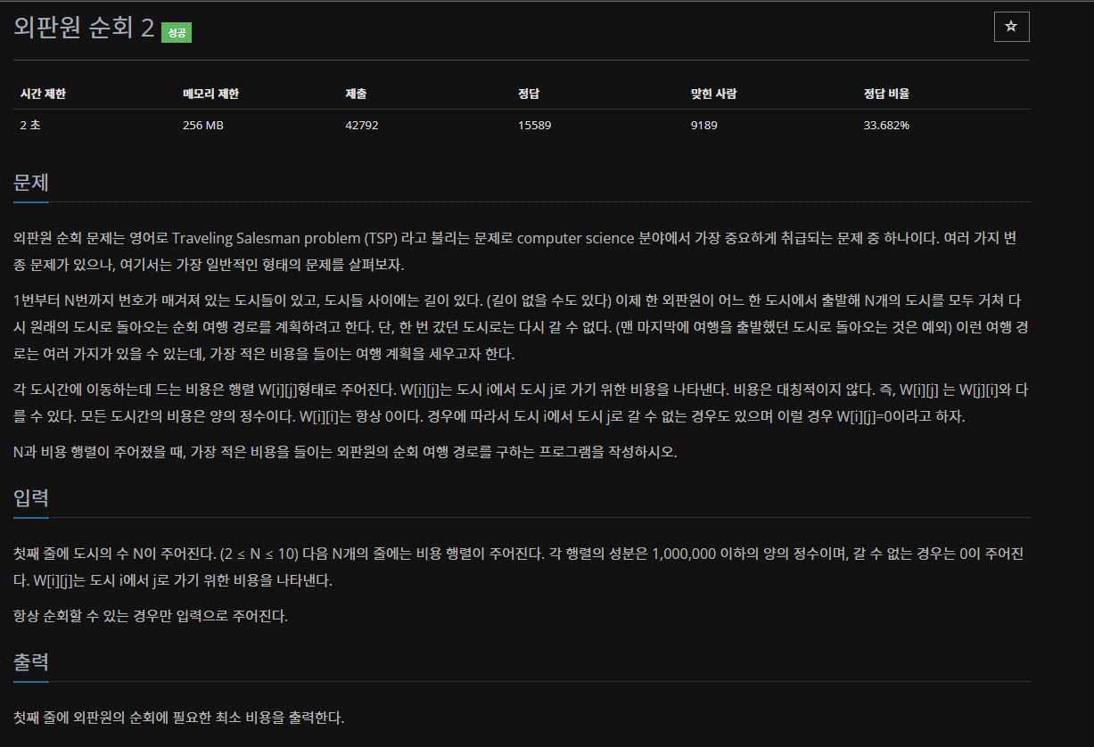 10971번: 외판원 순회 2